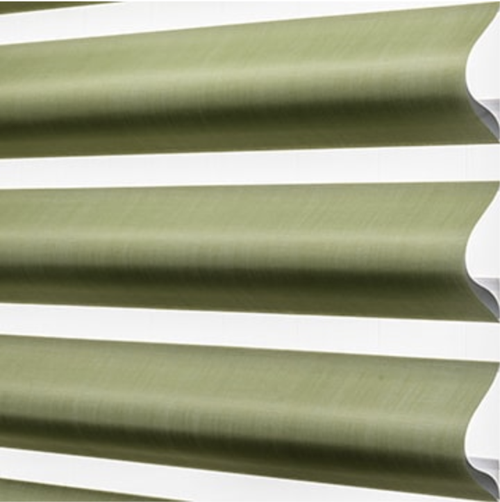 An exclusive product to Hunter Douglas, Pirouette shadings feature softly contoured, front-facing fabric vanes attached to a single sheer backing. During opening and closing, the vanes move in tandem for a fluid, graceful effect. Pirouette shadings can also be raised completely into the headrail for a totally unobstructed view.