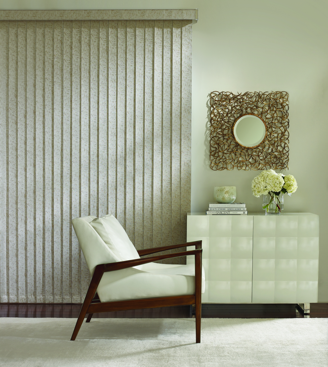 Experiment with color and texture with our Somner® Custom Vertical Blinds available in a beautiful range of finishes and fabrics—from printed, statement textiles to light-catching metals.
